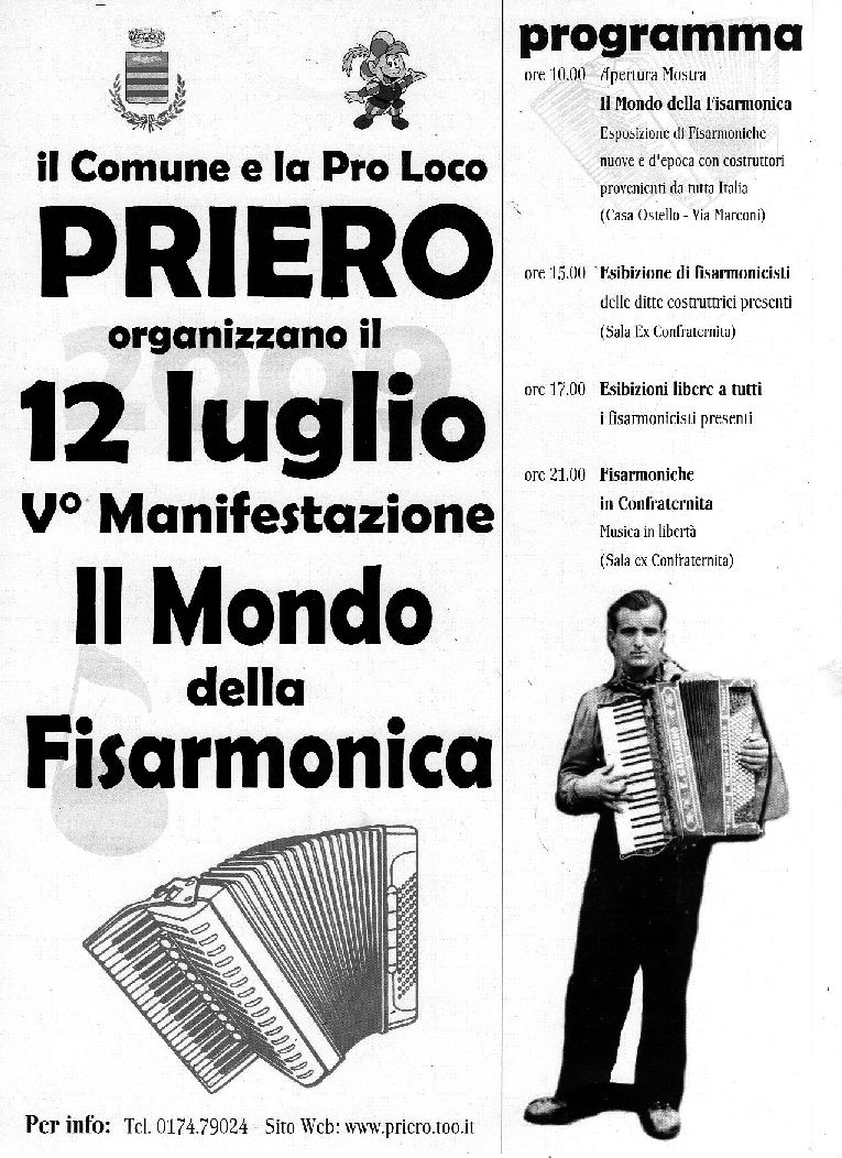 DOMENICA 12 LUGLIO 2009 A PRIERO IN PROVINCIA DI CUNEO SI TERRA' LA 5a EDIZIONE DE "IL MONDO DELLA FISARMONICA" ORGANIZZATA DAL COMUNE E DALLA PRO LOCO.
