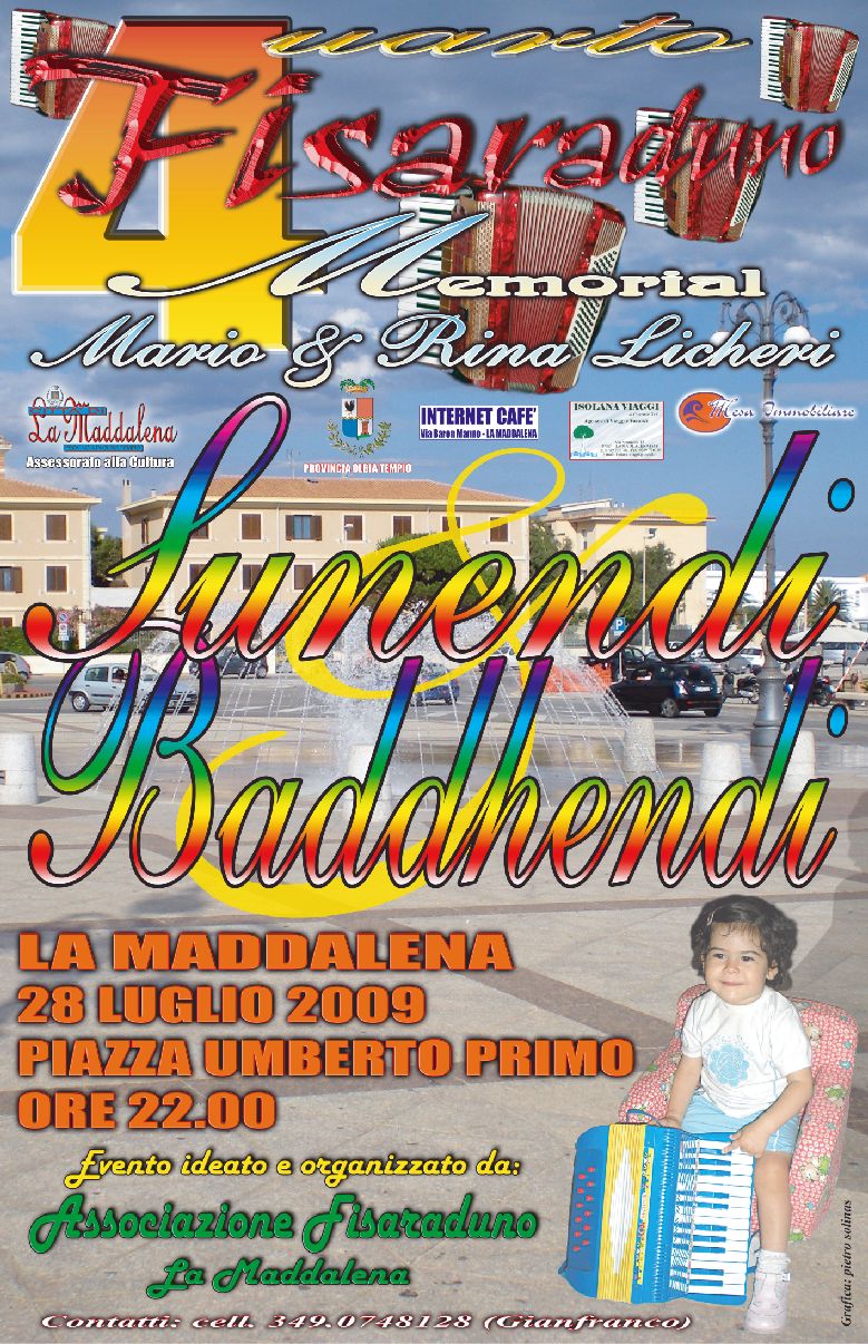 MARTEDI' 28 LUGLIO 2009 SAREMO PRESENTI CON LE NOSTRE FISARMONICHE AL "4° FISARADUNO - MEMORIAL MARIO & RINA LICHERI" ORGANIZZATO DALL'ASSOCIAZIONE FISARADUNO A LA MADDALENA IN SARDEGNA.