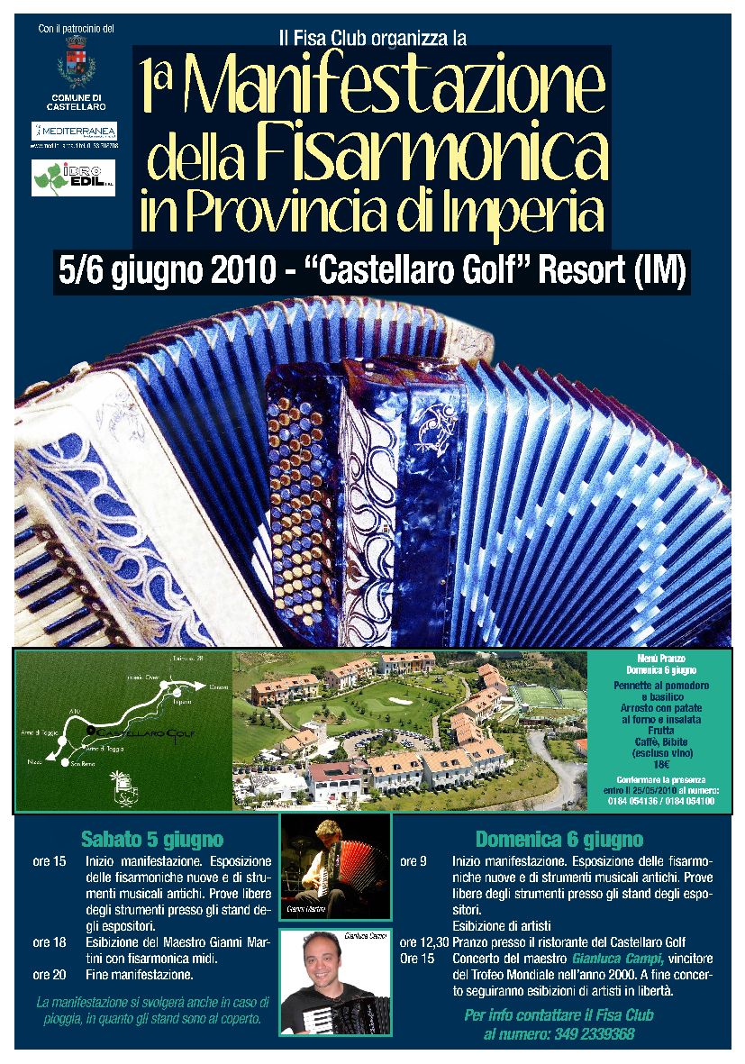 SABATO 5 E DOMENICA 6 GIUGNO 2010 SAREMO ALLA "1a MANIFESTAZIONE DELLA FISARMONICA" A CASTELLARO IN PROVINCIA DI IMPERIA.