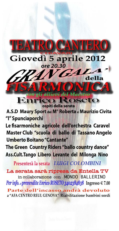 GIOVEDI' 5 APRILE 2012 PRESSO IL TEATRO CANTERO DI CHIAVARI , GRAN GALA' DELLA FISARMONICA CON GLI ALLIEVI DEL MAESTRO ENRICO ROSETO !!!