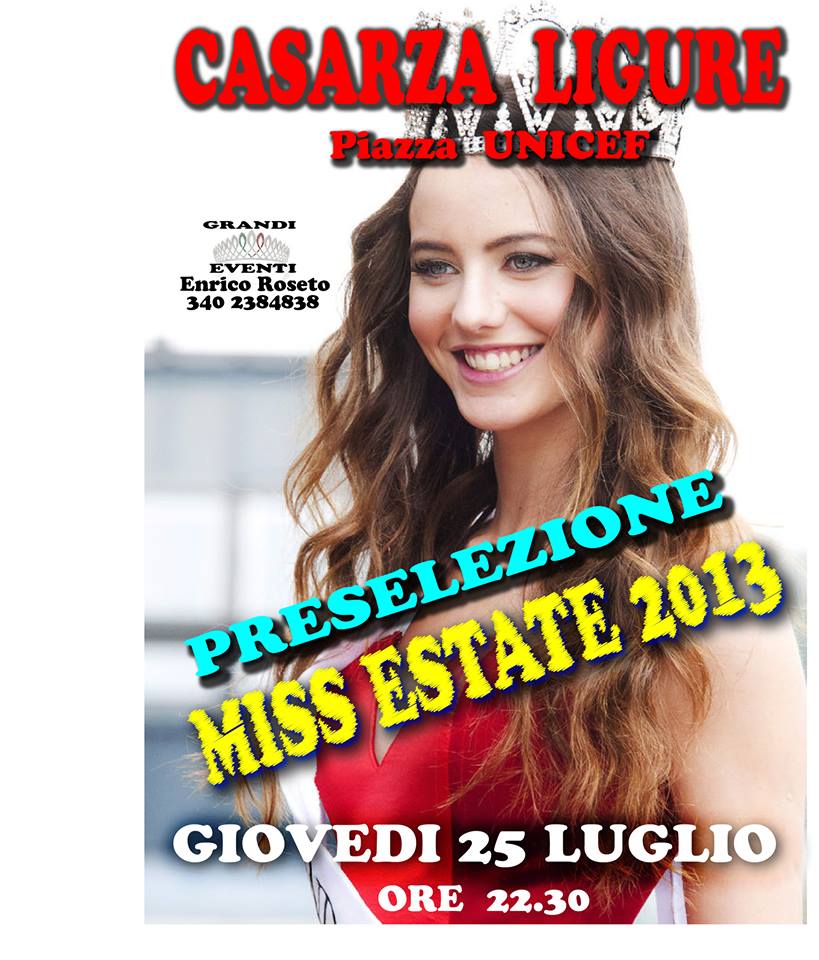 GIOVEDI' 25 LUGLIO 2013 IN OCCASIONE DELLA PRESELEZIONE DI MISS ESTATE 2013 A CASARZA LIGURE (GENOVA) ESPORREMO LE NOSTRE FISARMONICHE TEKNOFISA DURANTE L'INTERA MANIFESTAZIONE.